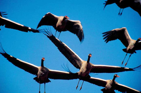 4.当黑颈鹤迁徙的时候,通常在什么时候飞翔起航?