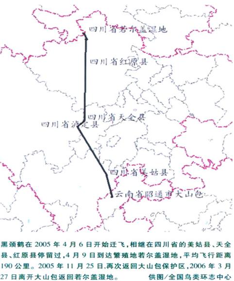 2、通过黑颈鹤迁徙路线了解黑颈鹤与家乡四川的关系。