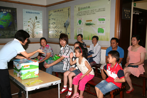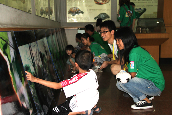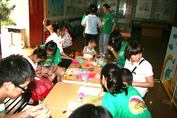 2011年7月15日成都动物园暑期保护站活动正式拉开帷幕。上午10点,科教部和科普馆工作人员12人与志愿者10人参与到了暑期保护站的首场活动中。陈红卫副园长也到场给与大力的支持,提出宝贵的意见和建议。作为四川省和成都市青少年科普教育基地,为了充实青少年的课外生活,使他们过一个健康、愉快、有意义的假期。今年的暑期保护站新增了更多内容丰富的活动项目如: 动物手偶剧场、动物操、手工坊等。活动当天共有50多名小朋友参加到动物操的活动中,12名小朋友与他们的家长观看了动物手偶剧场和手工坊制作。